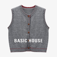 百家好(Basic House)Basic House/百家好休闲毛衣马甲2025秋冬磨毛纽扣开衫圆领背心女 烟灰色 M