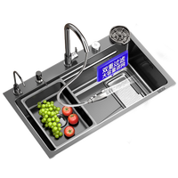 松鲸SUS304不锈钢厨房水槽大单槽洗菜盆一体盆纳米多功能洗碗槽洗菜池 5mm加厚【60*45】5孔集渣-满配