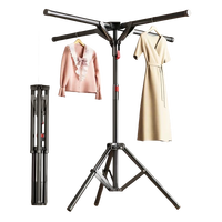 星坊晾衣架落地折叠阳台晾衣杆折叠衣架免安装伸缩晒被子内衣架 黑色