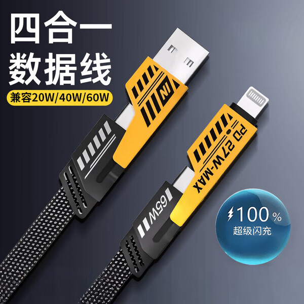 适用苹果小米华为iphone16ipadpro四合一数据线多功能机甲锌合金倍魔编织快充 1.0米【星际战绳四合一数据线】 【单条】四合一支持多种快充模式(低温不发烫)