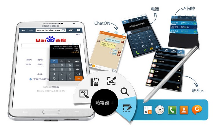 想要快速启动常用应用程序,又不想来回切换窗口?GALAXY Note3令人惊叹的随笔窗口功能,助您轻松快捷地开启新的应用。您只需在屏幕的任意位置画一个任意尺寸大小的窗口, 即可选择您想要开启新的应用。现在,您可以在写邮件时开启计算器功能,或是在浏览网页时拨打电话,在同一屏幕中尽享多种精彩。
