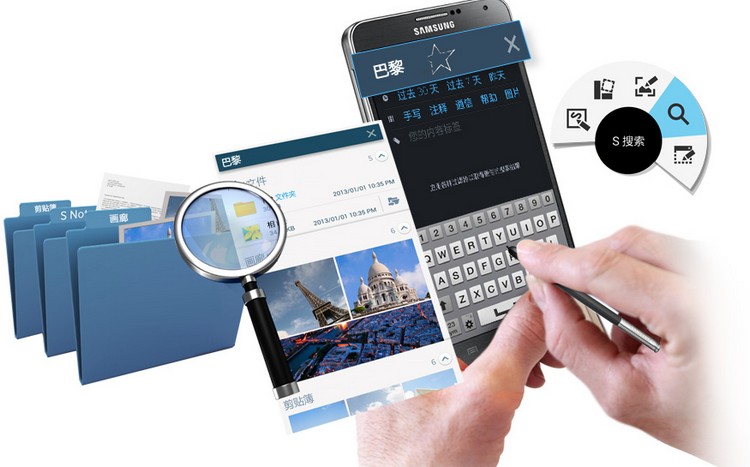 GALAXY Note3的S搜索,可随时根据您的指令进行最大范围的搜索,找出手机中的各种内容。只需点击S Pen 的按钮, 您可从任何界面直接到达S搜索功能,进行个人内容的导航和搜索。无论是相册主题还是聊天内容,甚至是您手写的符号,都能为您轻松找到。