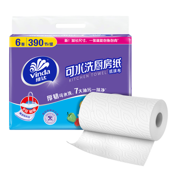 维达(Vinda)厨房用纸 可水洗卷纸65节*6卷 厨房纸 可接触食品级 吸油厨房清洁