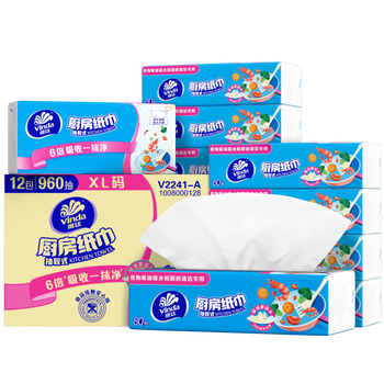 维达(Vinda)厨房抽纸【孙颖莎推荐】80抽*12包 吸油吸水懒人抹布厨房纸巾整箱