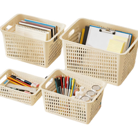 办公文件筐资料框档案筐文件夹收纳盒置物框学生放书筐简易桌面收纳筐 6个装-中号/奶油色*简约风办公桌面收纳筐 文件筐
