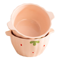 少女心草莓双耳碗勺加厚汤碗沙拉碗饭碗家用碗高颜值釉下彩餐具 浅粉草莓双耳碗(2碗2勺) 4件套