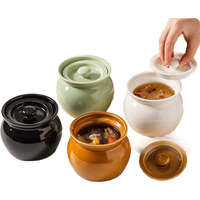 瓦罐炖盅隔水炖一人食蒸蛋炖罐带盖汤罐中式沙县小吃陶瓷炖盅瓦罐 450ml瓦罐炖盅(特厚款)黑色 450ml