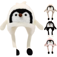 新款毛绒企鹅儿童帽子卡通可爱男女宝宝护耳帽冬季防寒保暖毛线帽 黑色企鹅-【毛绒护耳手捏捏会叫叫】 均码48-55头围