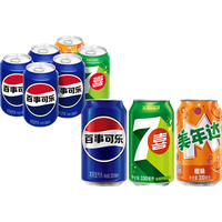 百事可乐Pepsi 可乐*4+7喜*1+美年达*1 碳酸饮料 汽水330ml 混合装