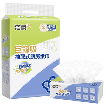 这款C&S 洁柔 厨房用纸,精选原生木浆,不含荧光增白剂、二噁英,安全无添加;采用点对点压花技术,使纸张纤维成立体构造,可做到立体吸水、立体吸油;干湿两用设计,纸张厚实柔软不易破,可做一次性洗碗巾,厨房好帮手。纸张规格:210*215mm,2层75抽*4包。