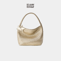 ECODAY包包女款中号编织包通勤托特包大容量单肩包婚包女包圣诞生日礼物 香槟色(中号)