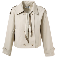 百图betu女装2025春季新款风衣翻领丝巾宽松截短式风衣外套女2502T58 卡其色 XS