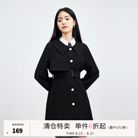 秋水伊人气质中长款风衣春秋新款复古百搭收腰高级感显瘦垂感英伦风外套 黑色 S