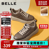 百丽男鞋厚底增高复古小白鞋25秋新运动休闲板鞋A2259CM5 卡其绒里 40
