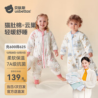 贝肽斯睡袋婴儿春秋冬季儿童宝宝3-6岁纯棉分腿式防踢被保暖惊跳连体衣 森趣牧歌【春秋双层 20-26°C】猫肚棉 S码 建议身高60-85cm建议0.6-1.3岁