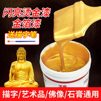 玉奕水性金箔漆烫金漆闪光黄色油漆金属描金漆不掉色墓碑漆防水金粉漆 水性金箔漆100g(送描字笔)