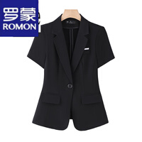 罗蒙(ROMON)短袖西装套装女装2024夏季薄款小个子短款修身一粒扣职业西服外套 黑色西装 S