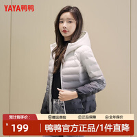 鸭鸭(YAYA)2025冬季新品轻薄羽绒服女短款连帽时尚韩版潮流渐变情侣款外套女 渐变黑色 S