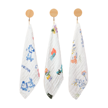 ELLE BABY儿童方巾a类纯棉纱布婴儿口水巾洗脸洗澡小毛巾 婴儿方巾孕妈洗脸巾三条花色随机