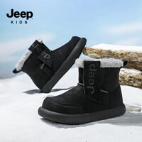 JEEP儿童雪地靴2025新款冬男童加绒棉靴子防滑加厚保暖东北大棉鞋 黑色 27