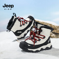 JEEP童鞋2025冬季新款儿童棉鞋加绒保暖防湿防滑大棉雪地靴 米色 27