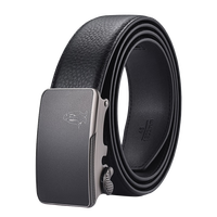 皮尔卡丹【头层牛皮】男士腰带自动扣皮带无扣头带身黑色(宽3.6长115cm)