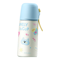 物生物儿童保温杯女士高颜值吸管水杯316L不锈钢大容量学生上学圣诞礼物 薄荷粉蓝【一盖双饮】380ml