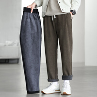 布衣传说【加绒加厚】重磅灯芯绒松紧腰抽绳柔软保暖运动小锥男式休闲裤 卡其 M