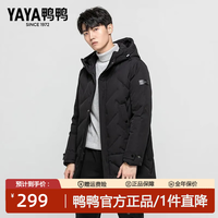 鸭鸭(YAYA)男士休闲羽绒服男中长款冬季时尚户外工装连帽防寒保暖鸭绒外套 黑色 M 【120斤以内】