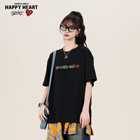 查尔斯桃心夏季宽松简约美式休闲情侣薄款潮流透气百搭短袖T恤男女同款 黑色 2XL