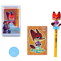 正版疯狂动物城2印章橡皮明盒周边玩偶盖瑞手办摆件朱迪尼克CP 尼克【玩偶+背景卡+铅笔+橡皮】