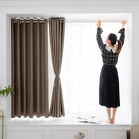 京东京造高精密米色窗帘 遮光窗帘布客厅卧室遮阳帘挂钩式 宽1.8*高2.4米