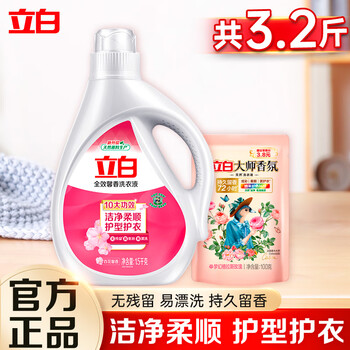 立白全效馨香洗衣液,3.2斤/瓶,整箱批发更实惠。独特配方去污低泡,温和对待衣物。
