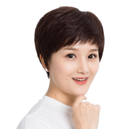 佰丝堂假发女短发自然全头套中老年女士妈妈真人发丝手织真发纹理发透气 深棕色 【全手织精品网】 短发 均码