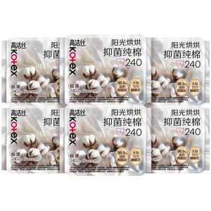 高洁丝阳光烘烘抑菌纯棉卫生巾日用组套240mm6片*6包姨妈巾