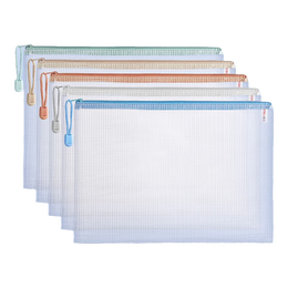 得力(deli)网格拉链袋文件袋学科袋学科分类收纳透明档案中小学生科目试卷收纳装作业文具A4大容量 【5个装】莫兰迪色系-透明经典款
