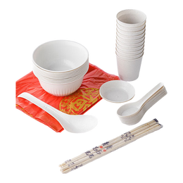 稻壳一次性餐具碗筷套装勺杯子十人份聚餐家用酒席商用野餐七件套 十人份套装【1包】绿色包装