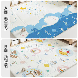 澳乐宝宝爬爬垫加厚婴儿防摔爬行垫XPE无甲酰胺折叠垫 鲸鱼梦乡+动物学习1.5m*1.8m*2cm