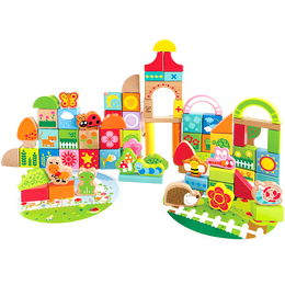 Hape【店铺主推】环保木质宝宝花园大颗粒积木桶拼搭益智儿童玩具礼物 80粒花园积木 高密度山毛榉 1-3Y