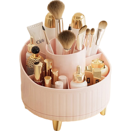 桌面收纳柜笔筒360度大容量化妆品桌面整理多格分区置物收纳筒 透明色-普通款12*14cm