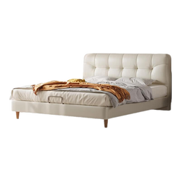 喜临门真皮双人床主卧奶油风极简家具实木脚排骨架床绵绵[床架] 奶油白-单床 1.5*2米