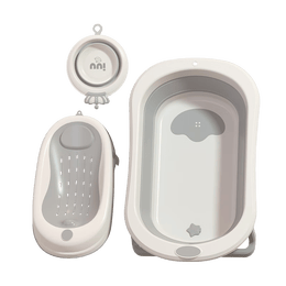iuu婴儿洗澡盆儿童浴盆大号宝宝可折叠可坐可躺浴架脸盆套餐 【官方补贴】浴盆+可调节浴架+脸盆-北欧灰 材质:食品级PP原料,无添加回料