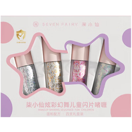 柒小仙 儿童亮片眼影面贴 青少年学生舞台妆演出珠光闪粉钻石金葱亮 闪片啫喱(4支装)(全国京快配送)