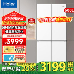 海尔(Haier)【小红花-绽放版】海尔冰箱500升四开门十字对开门594mm专业超薄一级能效节能家用电冰箱 594MM超薄+AI变频科技+健康黑金净化