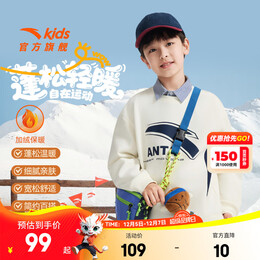 安踏儿童卫衣男大童装2025冬季新品加绒简约百搭长袖套头衫 象牙白-1 130 cm