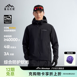 喜马拉雅霜壳软壳衣户外夹克男女款春夏耐磨防风外套冲锋衣 星尘黑-连帽A36BA6B190 XL
