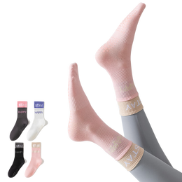 猫人4双女士袜子女双螺口中筒瑜伽袜潮流时尚硅胶防滑健身运动袜