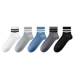宜而爽袜子男中筒袜秋冬款男士运动袜拼色袜口长筒袜 【5双】黑色+蓝色+咖色+情色+浅灰 均码