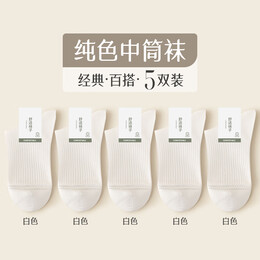 雅鹿秋冬款袜子男士中筒袜黑白色经典百搭男生防臭诸暨纯色素色袜 白色 【5双】 均码