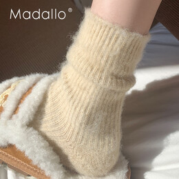 莫代尔袜子女秋冬季中筒水貂绒冬天毛绒绒加绒加厚保暖地板长袜